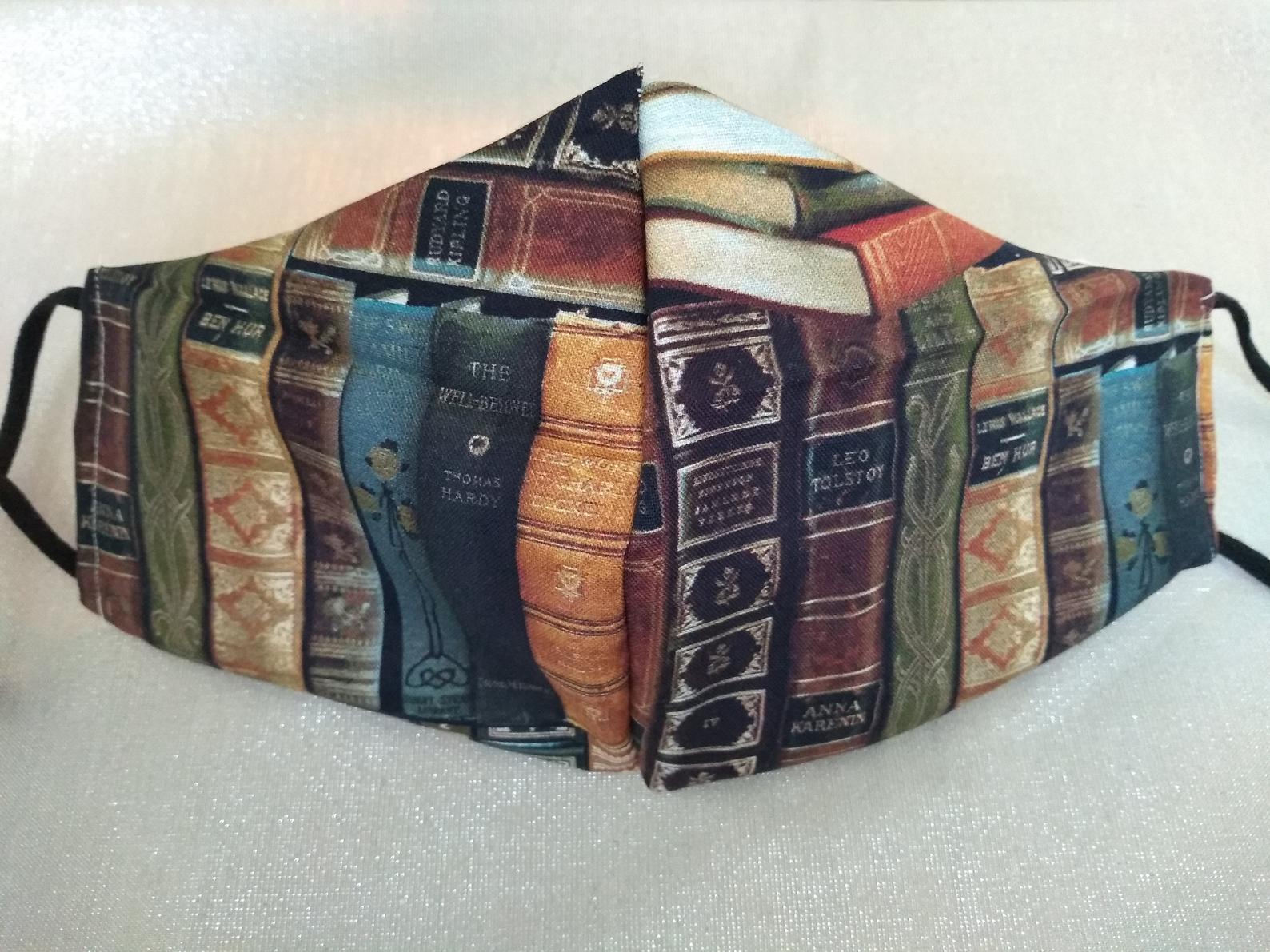 I have quite the collection of fabric masks, but I’ve been thinking about trying to find a few masks that speak to my bookish heart and support small businesses, so I headed to Etsy to find a variety of fun and fanciful masks that let everyone know there’s a book waiting for me at home. Knowing that our Echo-lit friends and followers are a smart, bookish lot; I thought I’d share some of my favorite Etsy mask finds. I’ve tried to show you a wide range of styles and fabrics so that you can find a fabulous mask that fits your personal preferences